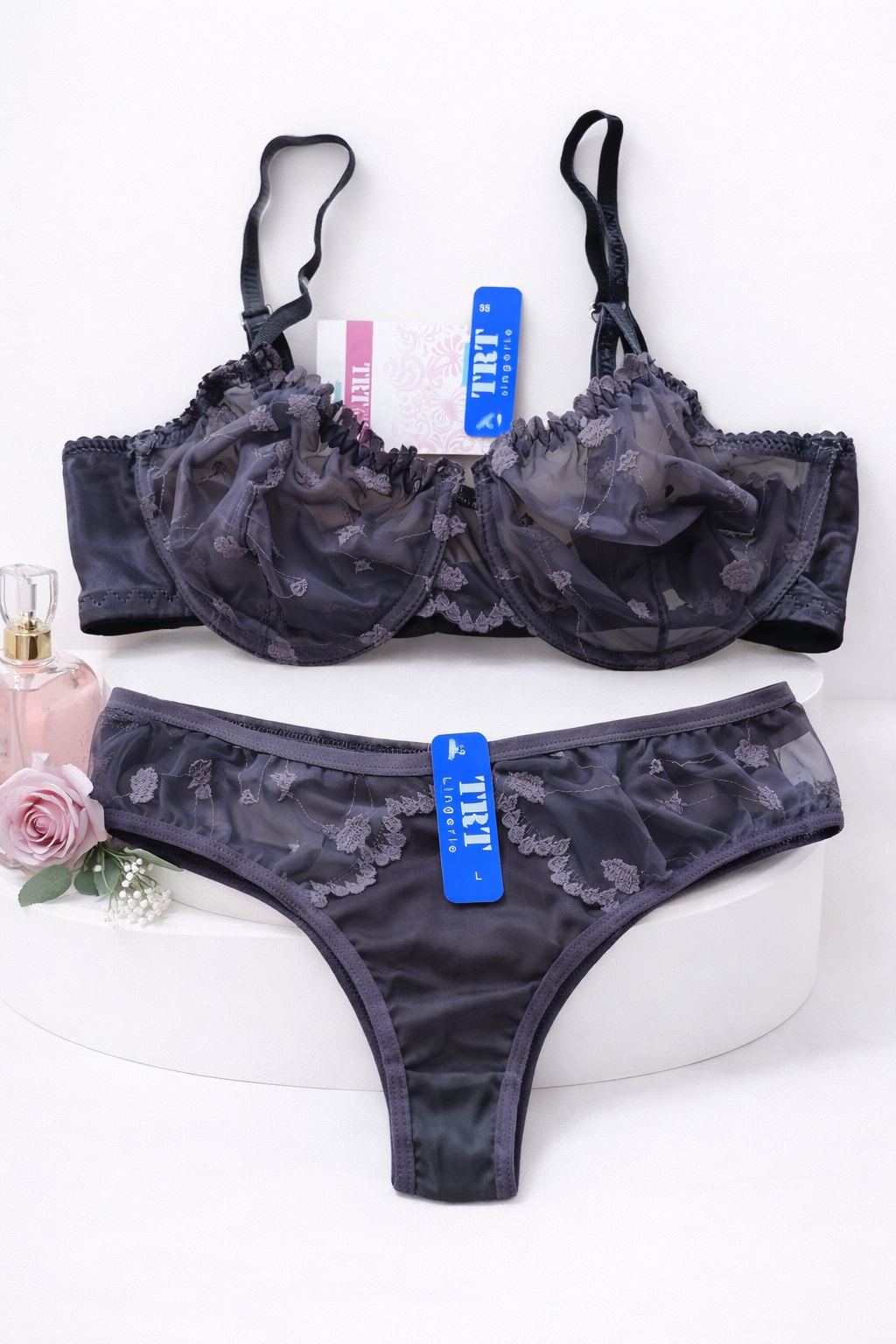 ست شورت و سوتین هارنسدار زنانه مدل توری فانتزی سایز۸۵